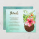 Este cartão de informação de hóspedes tropicais apresenta um dentro floral buquê a coco com floral de cor aqua num fundo azul pastel aqua. Seus detalhes de casamento, como acomodações de hotéis, informações de recepção bem-vindas e sites na web, estão em cartazes dourados. O lado inverso é uma textura marmoreada e pintada em tons de azul aqua oceânico. Projetado para coordenar com a minha coleção de Casamentos Tropicais.