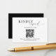 Cartão de Gabinete de Casamento de Script Branco Preto com Clama de Código QR de Orçamento