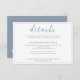 Esta Carta de Detalhes do Casamento Azul Branco e Dusty, Projetada com Script de Caligrafia Moderno e Elegante com Fronteira, e inclui o nome da noiva e noiva no verso.