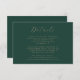Este elegante cartão de detalhes do casamento moderno contém texto dourado em um fundo verde esmeralda. O título aparece em um belo script de escrita manual, com texto personalizável abaixo na fonte sans serif. O verso é verde estável.