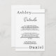 Este elegante cartão de detalhes de casamento preto e branco é perfeito para um casamento moderno. o simples design apresenta uma caligrafia preta elegante sobre um fundo branco.