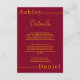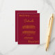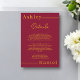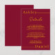 Este cartão de detalhes de casamento elegante em borgonha e dourado é perfeito para um casamento moderno. O design simples apresenta caligrafia dourada elegante em um fundo borgonha.