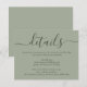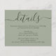 Forneça aos seus convidados detalhes importantes com este cartão de inclusão de casamento elegante em verde sage moderno com uma fonte de letra moderna. Itens correspondentes disponíveis.
