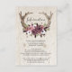 Cartão de Enclausuramento de Casamento Floral Boho Rústico com Chifres de Madeira - O cartão de enclausuramento apresenta chifres Boho adornados com flores rosa, branco e burgundy. Esses convites boêmios apresentam chifres de madeira com flores em um fundo de madeira.