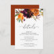 Cartão De Informações Casamento Floral de Borgonha Laranja Queimada