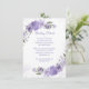 Pormenores de Casamento Cartões com um design floral roxo elegante. Perfeito para o seu dia especial. * Nota especial: O design e o tamanho da fonte (12) foram feitos para as placas de 4,5" x 6,25". Se você escolher uma placa de tamanho menor, talvez seja necessário ajustar o tamanho da fonte para torná-la maior. Isso diminuirá a quantidade de linhas e texto que você pode usar. O tamanho 12 da fonte é o tamanho mínimo recomendado para convites, etc. Você também pode aumentar o tamanho da fonte e digitar em qualquer placa e centralizá-la verticalmente se a quantidade de informações ocupar menos espaço do que as linhas fornecidas. Para isso, clique em "personalizar" e, na parte inferior, clique em "Editar usando a ferramenta Design" e clique na parte de texto da placa. As opções de edição serão pop.* Espero que você tenha um belo dia de casamento.