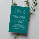 Cartão De Informações Casamento Mínimo de Teal com Simplicidade 3 Script