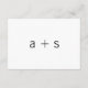 Cartão moderno de cerimônia de casamento com um simples design com "acomodações" em uma fonte sans serif grande a preto sobre um fundo branco. Os detalhes estão em minúsculas e acrescentam ao sentimento contemporâneo. A parte de trás tem seu monograma inicial com um sinal de mais. Estes cartões são perfeitos para um casamento minimalista.