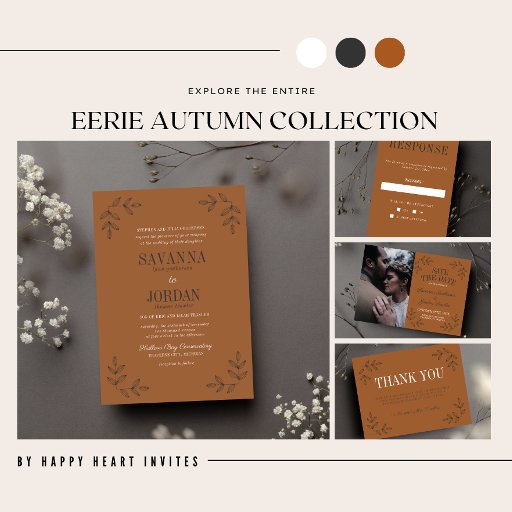 Cartão De Informações Casamento Negra de Terracotta de Halloween Autumn