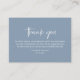 Esta é a escrita simples e moderna, num esquema azul empoeirado, obrigado de casamento, Cartão de Alojamento. Você pode mudar as cores da fonte e adicionar suas notas/ detalhes de agradecimento ao casamento. #TeeshaDerrick