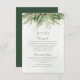 Belo cartão de cerimônia de núpcias com ilustrações botânicas pintadas à mão de água de verde de inverno, pinheiro e ramos de uva, cones e bagas sagradas. Escolha perfeita para casamentos temáticos de inverno ou Natal.