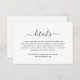 Placa de gabinete de casamento moderna em preto e branco minimalista com o cabeçalho editável "Detalhes" em uma tipografia elegante com traços. A cor pode ser alterada para qualquer um que você desejar, clicando no botão "personalizar". Esta simples carta de casamento vai bem com qualquer tipo de suíte de convite para casamento.