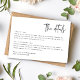 Mantenha os detalhes do seu casamento organizados e apresentados elegantemente com o Cartão Mínimo de Casamento Simples Preto e Branco, projetado para casais que valorizam a clareza e o estilo refinado. Apresentando um layout de texto preto limpo em um fundo branco nítido, este cartão de compartimento complementa perfeitamente qualquer tema de casamento moderno, clássico ou minimalista. Ideal para compartilhar informações essenciais como direções, acomodações ou detalhes de recepção, ele mantém uma visão coesa com seu pacote de artigos de papelaria enquanto garante que os convidados tenham tudo o que precisam. Personalizável e impresso em cartolina de qualidade superior, este cartão de gabinete adiciona um toque atencioso e na moda à sua experiência de planejamento de casamento.
