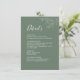 Cartão De Informações Casamento Verde De Sage, Plantação Botânica Minima