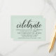 O cartão "Celebrado" verde azul moderno e chic mint apresenta um design tipográfico preto na moda com acentos de script de caligrafia em negrito e texto elegante personalizado que pode ser personalizado com suas informações de recepção de casamento.