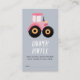Este cartão de design moderno e fofo para chá de bebê de meninas ‘diaper raffle’ apresenta um design de trator rosa fofo, com um design de animal de fazenda correspondente no verso. Há espaço para você pedir que os convidados tragam fraldas para um sorteio, usar a mensagem fornecida ou criar a sua própria! Encontre o convite de fazenda correspondente em nossa coleção.