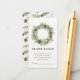 Cartão de Chá de fraldas de Férias de Natal - Fralda Raffle - A placa apresenta uma coroa de pinheiros natural festiva adornada com pínus e eucalipto. O cartão coordena-se perfeitamente com o Convite ao Chá de fraldas e outros produtos da coleção.