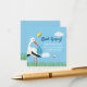 Cartões de chá de fraldas para garotos, bonitos e personalizáveis, são uma cegonha puxada à mão com abelhas e borboletas na grama. Uma cegonha azul faz uma entrega especial de um bebê. Celebre a chegada do novo bebê com este cartão de bebê bravo e bebê com névoa com pedido de livro. Personalize a solicitação com seu texto.