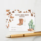 Este design apresenta cores neutras modernas em uma aplicação de aquarela. Design em impressão de vaca, copo de champanhe, cacto do deserto, botas de cowboy.
