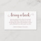CARTÃO DE SOLICITAÇÃO DO LIVRO: #Mauvelous Sophisticated mauve rosa cor-de-rosa e branco "trazer um livro" ou chá de fraldas de revelação de gênero que apresenta um roteiro divertido e casual, escrito à mão. O clássico design inclui uma moderna camada de tipografia de citações feitas à mão juntamente com um poema: "Apenas um pedido e esperamos que não seja duro | por favor, traga um livro para bebê em vez de um cartão | assinando o seu nome, lembraremos e compartilharemos | seu presente especial mesmo quando você não estiver lá" Para outras cores ou produtos correspondentes, visite a loja justFharryn Zazzle ou entre em contato com o designer, c/o Fharryn@yahoo.com Todos os direitos reservados. #bohochic #zazzlemade