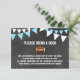 Por favor, traga um livro para um chá de fraldas do tema FOTBALL esportivo. O fundo do quadro com bandeiras de festas de bunt com futebol. Adicionar aos seus convites. Turquesa azul e cores brancas. Obter itens correspondentes na coleção "CHÁ DE FRALDAS TEMA ESPORTE"