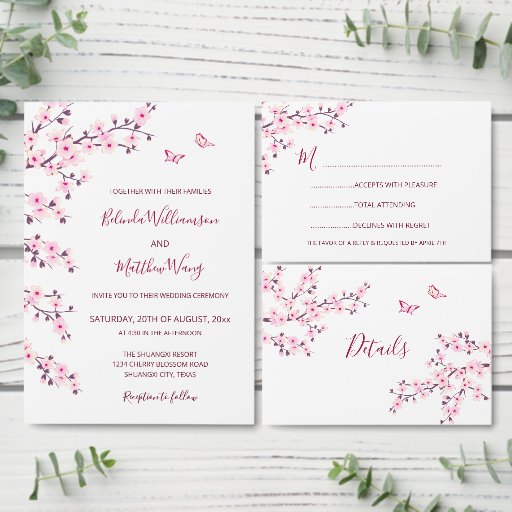 Cartão De Informações Cherry Blossom Pink White Wedding Details