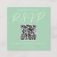 Este cartão RSVP de casamento verde de menta macia apresenta um roteiro branco chic e um código QR de um site para uma doce cerimônia de primavera ao ar livre. Uma tipografia simples e elegante em um convite verde pastel sólido tranquilo para um local de jardim.