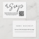 Placa de receptáculo rsvp moderno preto e branco. Placa RSVP minimalista com código QR e solicitação de música. Fonte simples de caligrafia sobre fundo preto.