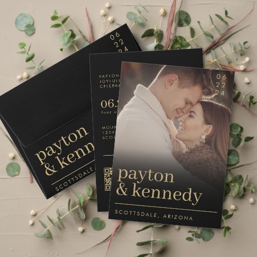 Nosso Simples Cartão de Enclosure Chic RSVP do Site de Casamento de Na moda Simples Elegante demonstra elegância moderna com seu design minimalista e detalhes sofisticados, fazer perfeito para casais planejando um casamento preto e dourado. Com suas linhas limpas e o mínimo de tipografia, este cartão exude simplicidade e sofisticação, acrescentando um toque de elegância subestimada à sua suíte de papelaria de casamento. A inclusão de um código QR e detalhes do casamento no site do casamento adiciona uma reviravolta contemporânea, permitindo aos convidados acesso rápido e conveniente a informações importantes sobre seu grande dia. Projetada para casais modernos, esta placa de gabinete complementa a estética geral do seu papel de carta de casamento, fornecendo uma aparência coesa e na moda. O seu design simples, porém chic, garante que irá apelar a uma grande variedade de sabores, enquanto o seu esquema de cor preta e dourada acrescenta um toque de luxo e sofisticação. Quer seja usado como cartão RSVP ou para fornecer detalhes adicionais sobre seu casamento, este cartão chic é certamente para impressionar seus convidados e dar o tom para uma celebração elegante e memorável.