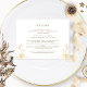Belo cartão de detalhes de casamento onde você pode adicionar os detalhes que quiser. Design com detalhes botânicos delicados, dourados, dourados. A nossa capacidade de acrescentar quaisquer pormenores é apenas um exemplo. Se necessário, você pode selecionar o botão azul "Editar usando a ferramenta Design" e fazer alterações no tamanho, estilo, cor e posição do texto. Parte da nossa "Encantação Branca e Dourada e Coleção Celestial". Visite a coleção inteira em: https://www.zazzle.com/collections/white_and_gold_enchanting_and_celestial_collection-119073673253835730