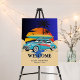 Cartão De Informações Chuva de Bebê do Carro Surfista Retro