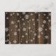 Cartão de pedido de livro para chã de bebê com tema de inverno rústico. Este design moderno apresenta luzes de corda e flocos de neve em um fundo de madeira escura.
