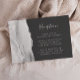 A borda esquerda desta elegante placa de gabinete de recepção de casamento moderna apresenta uma cinza e uma borda branca de flutuação, aparada com falso brilho prateado. O título aparece no script de escrita manual, com texto personalizável abaixo na fonte da placa de reprodução da cinza pálida em um plano de fundo da cinza de carvão. O lado inverso apresenta um design agate correspondente.