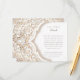 Este cartão elegante de gabinete de informações é o complemento perfeito para a suíte de casamento, projetado para oferecer aos seus convidados detalhes adicionais com estilo refinado. Ele apresenta um padrão islâmico floral clássico em uma paleta serena de cor de creme e marfim, dando um toque de sofisticação aos detalhes mais refinados do seu evento. O lado esquerdo da carta fornece um fundo suave que enquadra elegantemente o texto, enquanto a direita mostra o trabalho de arte detalhado, convidando convidados a explorar a profundidade do tema do seu casamento. Ideal para direções, especificações de cerimônias, e insights adicionais, este cartão não é apenas informativo, é um guardião em si mesmo.