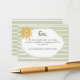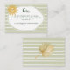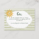This whimsical coastal wedding details enclosure card features a vintage sun motif, lace border, and stylish sage green stripe background. Perfect for a beach or California destination wedding. Created by Simply Farmhouse Press.