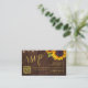 Placa de receptáculo de resposta RSVP on-line de barato de orçamento de convite para girassóis elegantes russos, com código QR de digitalização (gerado automaticamente) em um fundo de madeira marrom com cordas de luzes cintilantes. +++++++++ Veja a coleção para papelaria correspondente.