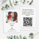 Capture e acalme suas memórias do dia do casamento com este Cartão de Código QR de Compartilhamento de Fotos de Casamento elegantemente projetado. Perfeito para celebrações modernas, esta placa de gabinete combina estilo e funcionalidade com uma sofisticada estética minimalista a preto-e-branco. Com espaço para uma foto personalizada de noivado, seus convidados podem facilmente carregar fotos de seu dia especial simplesmente digitalizando o código QR ou visitando seu site personalizado. Personalize o cartão com seus nomes, data de casamento e um código de QR digitalizável, adaptado ao seu evento. Ideal para preservar memórias sentidas e criar uma experiência perfeita para seus convidados.