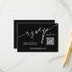 Esses modernos cartões de cerimônias de casamento preto e branco são uma maneira fácil para seus convidados RSVP no seu site de casamento. Inclua seu próprio código QR e seu site de casamento na frente e informações adicionais na parte traseira (exclua nosso texto para deixar o vazio de trás). A cor das placas pode ser alterada com nossas ferramentas de edição. MAIS TAMANHOS feitos para você em nossa loja. O Serviço de Design ao Vivo pode ajudá-lo com o layout do seu design ou cores, se necessário.