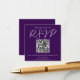 Este cartão RSVP de casamento roxo real com código QR apresenta uma bela tipografia branca num sólido cartão violeta para uma cerimônia noturna no inverno. Escrito minimalista e uma cor ousada fazem sua pop de coleção de noivas e se destacam da multidão.