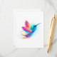 Colibri voador brilhante, iridescente e exótico em um fundo branco, pintado com tinta aquarela multicolorida. Colibri arco-íris.