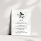 Projetado para coordenar com a nossa coleção de casamento Grandiflora, este novo cartão verde botânico e floral de informação para convidados apresenta um par de graciosas flores brancas de magnólia e folhas verdes que tocam seus principais detalhes de casamento, como acomodações de hotel, informações de recepção bem-vindas, site e muito mais. Adicione seu texto personalizado usando os campos fornecidos e use a função Personalizar para ajustar fontes, tamanhos e espaçamento.