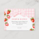 Cartão de Fralda Raffle de Chá de fraldas de Morango Coquette Strawberry. Apresentando um tema delicioso de morango, um fundo cor-de-rosa de gingham e sotaques moles de aquarela, este cartão é perfeito para uma celebração de primavera ou chá de fraldas de verão.