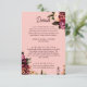 Compartilhe tudo o que seus convidados precisam saber com este cartão de detalhes de casamento Romântico de Crisântemo. Compondo ricas flores de outono em burgundy, rosa e pêssego, este elegante inserto é perfeito para delinear acomodações, direções, código de vestimenta, horários de transporte ou eventos do fim de semana do casamento. Personalize com suas próprias palavras para se adequar à sua celebração. Ideal para casamentos de outono, cerimônias com tema floral ou eventos de destino. Projetado para combinar perfeitamente com a suite completa de Crisântemo Romântico para um conjunto de convites coordenados e sofisticados.
