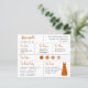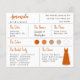 Um cartão de informações de damas de honra com vestido laranja queimado e paleta de cores de casamento laranja queimado / neutros. Inclui informações sobre a data e local do casamento, as cores do casamento, os membros da comitiva de noiva, o vestido de dama de honra e uma mensagem de proposta de dama de honra. No canto superior esquerdo, o nome da dama de honra está escrito em uma fonte manuscrita laranja queimado. No canto inferior direito, há um vestido laranja queimado. No centro, estão as cores do casamento em círculos. As cores, incluindo a cor do vestido de noiva, podem ser alteradas.