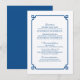 Cartão de Informação de Casamento Deco Chic Simples e minimalista com uma moderna fronteira decorativa de decoração de arte azul escura. Este cartão de informação clássico e elegante é fácil de personalizar com os seus detalhes de casamento. Localize mais opções de personalização clicando em Personalizar.