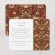 Este cartão de informações de casamento, adorado com o padrão do Ladrão de Morango, é uma maneira deliciosa de fornecer aos seus convidados todos os detalhes mais refinados do seu dia especial. O famoso design de William Morris acrescenta um toque histórico e luxuoso à carta, com a sua rica tapeçaria de pássaros, frutas e flores. O cartão oferece espaço para compartilhar informações essenciais, como direções, especificações da cerimônia da igreja e preferências de presentes, garantindo que os convidados sejam bem informados e possam desfrutar do dia sem nenhum problema. O clássico design é perfeito para aqueles que apreciam a beleza do movimento Artes e Artesanatos e desejam incorporar esses detalhes à narrativa de casamento.