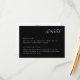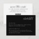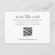 Cartão de Informações de Casamento Simples: Este elegante cartão de detalhes de casamento minimalista moderno apresenta uma frente preta elegante com texto branco nítido, oferecendo uma maneira sofisticada de compartilhar informações essenciais. O verso inclui um código QR conveniente, permitindo que os convidados facilmente o leiam e acessem mais detalhes em seu site de casamento. Perfeito para casais que valorizam tanto o estilo quanto a funcionalidade, este cartão é um complemento simples, porém refinado, para a papelaria de seu casamento.