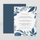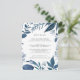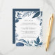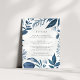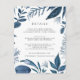 Projetado para coordenar com a nossa coleção de casamento Wild Azure, este elegante cartão de informação botânica de inverno apresenta uma fronteira de folhagem azul que envolve os seus principais detalhes de casamento, como alojamentos de hotel, informações de recepção de boas-vindas, site e muito mais. Adicione seu texto personalizado usando os campos fornecidos e use a função Personalizar para ajustar fontes, tamanhos e espaçamento.