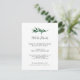 Projetado para coordenar com a nossa coleção de casamento Palm Wreath, este novo cartão de informação botânica verde contém um solteiro de palma em cores verdes ricas, com detalhes chave de casamento, como acomodações de hotéis, informações de recepção de boas-vindas, site e muito mais. Adicione seu texto personalizado usando os campos fornecidos e use a função Personalizar para ajustar fontes, tamanhos e espaçamento.