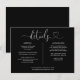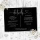 Um cartão de informações de detalhes do casamento com script de coração preto e branco personalizado com seus detalhes especiais em tipografia elegante. Criado por Thisisnotme©